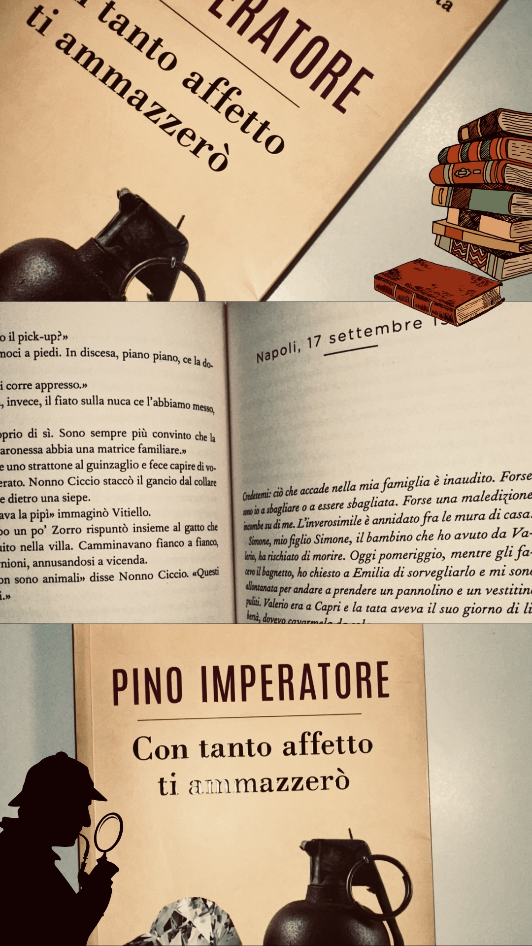Con tanto affetto ti ammazzerò di Pino imperatore, è un giallo umoristico pubblicato per la prima volta nel 2019 (DeA Planeta). Imperatore è nato a Milano da genitori emigranti napoletani e vive in Campania dall’infanzia. Ha vinto i maggiori premi italiani per la scrittura comica ed è autore di opere teatrali, racconti, saggi umoristici e romanzi bestseller. La scrittura dell’autore è fluida e coinvolgente, il linguaggio è ricco e dà importanza alla cultura e al dialetto napoletano. I periodi utilizzati, come anche il lessico, mi sono risultati semplici, quindi non c’è un uso particolare di punteggiatura. Inoltre l’autore ha deciso di far prevalere i dialoghi, molto sciolti e con presenza di simpatiche battute. I personaggi sono ben sviluppati, ognuno con proprie caratteristiche che li contraddistinguono. La storia segue l’ispettore Scapece che indaga, con presenza di personaggi secondari, sull’accaduto alla festa della Baronessa De Flavis. Leggere questo libro è stato veramente un piacere perché la storia è piena di colpi di scena, il ritmo è equilibrato, è presente un giusto bilancio tra ironia e suspense, è divertente ma allo stesso tempo profondo e riflessivo. I temi trattati sono l’amore, la famiglia, ma in particolare un tema secondo me attuale ai giorni d’oggi : scelta tra una vita serena, se trascorsa con chi amiamo e facendo del bene al prossimo, o un inferno, se ci lasciamo avvelenare dal denaro e dall’egoismo. Consiglierei senza dubbi la lettura di questo libro, che mi ha fatta ridere, riflettere e provare stupore al finale.