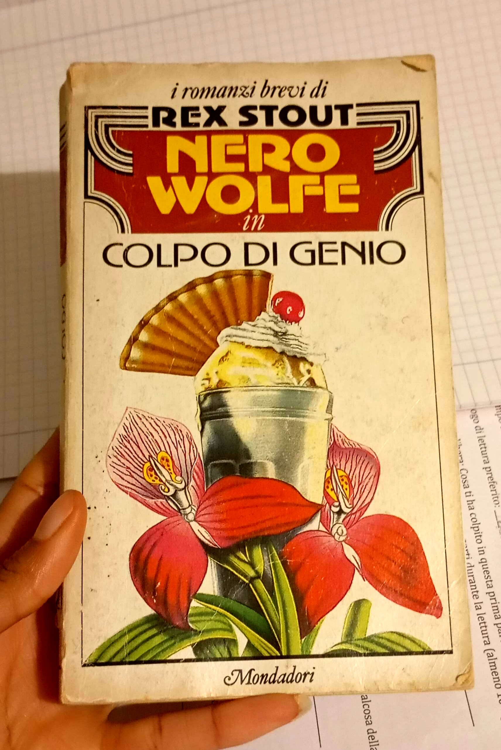 Il libro si intitola Colpo di genio ed è stato scritto da *Rex Stout*, un autore americano. È uscito nel *1944* e in Italia è stato pubblicato da *Mondadori*. Il protagonista è *Nero Wolfe*, un investigatore molto intelligente che non esce quasi mai di casa e risolve i casi solo con la logica. Insieme a lui c’è il suo assistente, *Archie Goodwin*, che lo aiuta andando in giro a parlare con le persone.